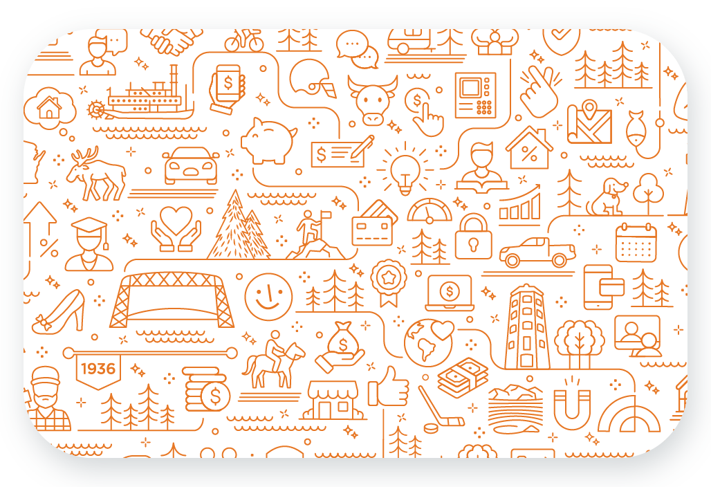 The pattern was designed to represent the past, current, and future of Members. From where it all started in 1936, to a throwback of the old Cloquet Co-op Credit Union logo and subtle nods to our communities, there’s a rich story to share. Of course, we can’t forget the way we support big dreams, contributions to our communities, or our members. Your role in our story is what makes us Members.